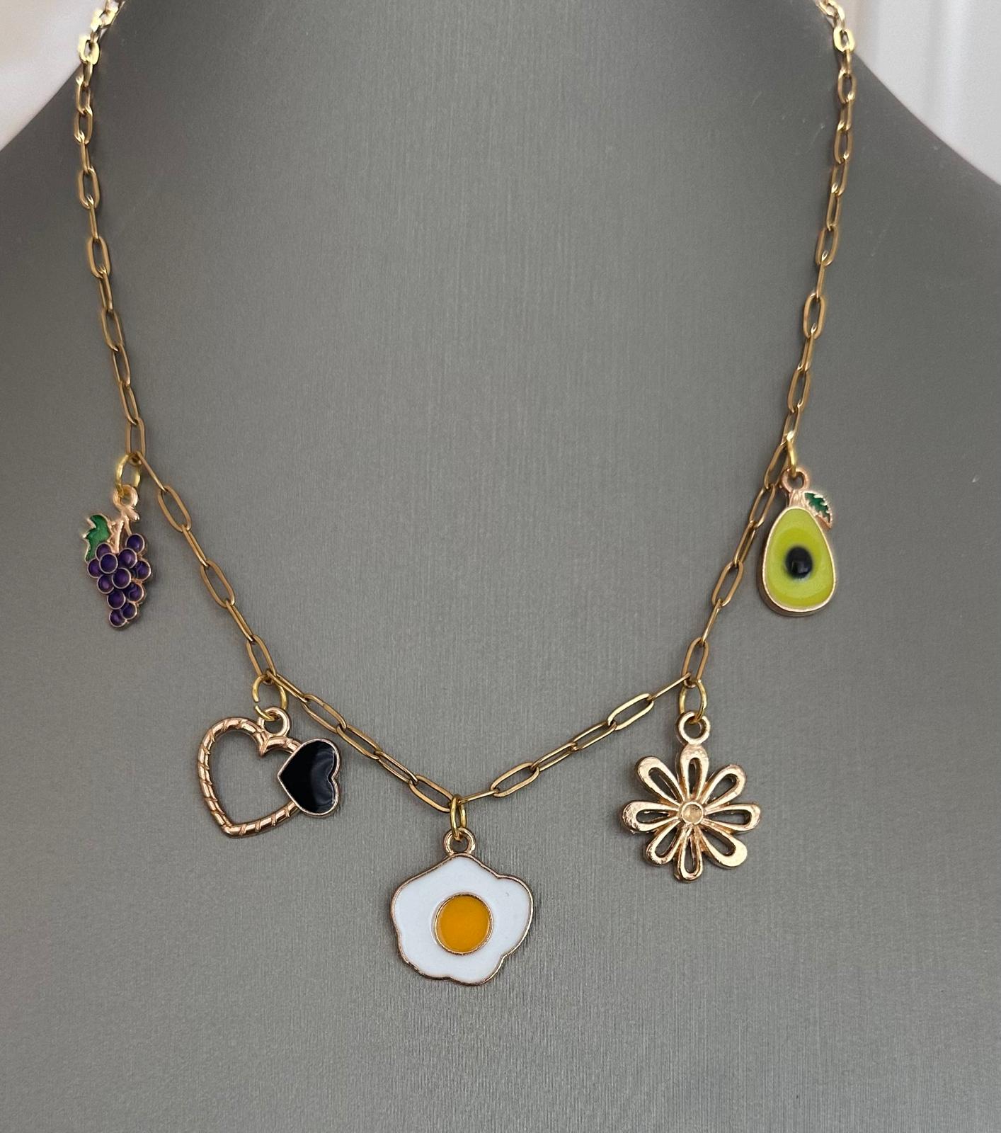 Eggy Avocado and Grapes Charm Necklace 16”